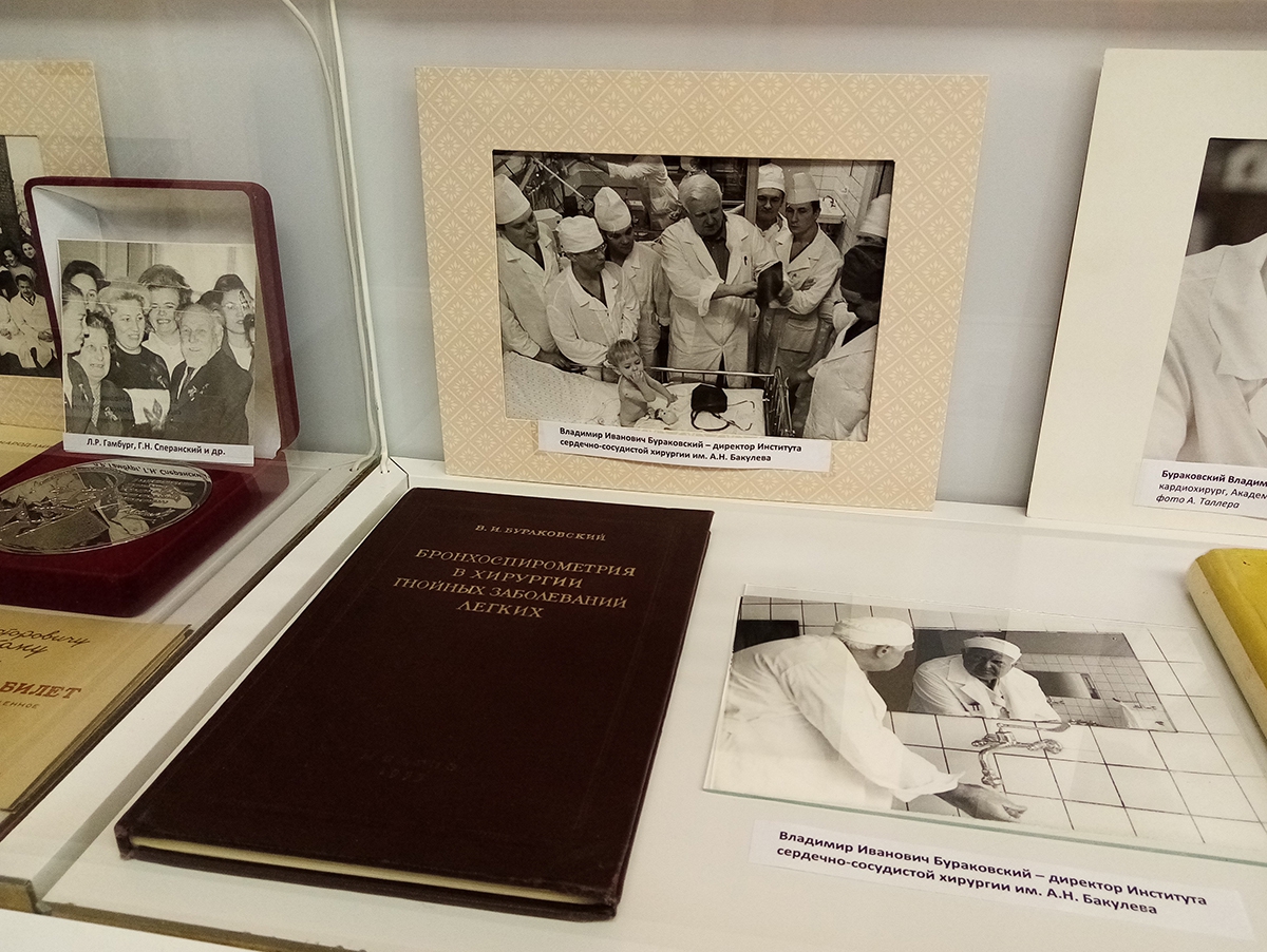 К столетию со дня рождения выдающегося кардиохирурга ХХ века, создателя крупнейшей школы сердечно-сосудистых хирургов, академика РАМН, заслуженного деятеля науки РФ, лауреата Ленинской и Государственной премий, Героя Социалистического Труда профессора Владимира Ивановича Бураковского музей Академии подготовил новую выставочную экспозицию. В ее основе — редкие кафедральные снимки, избранные труды профессора Бураковского, а также портретные фотографии из фондов музея.