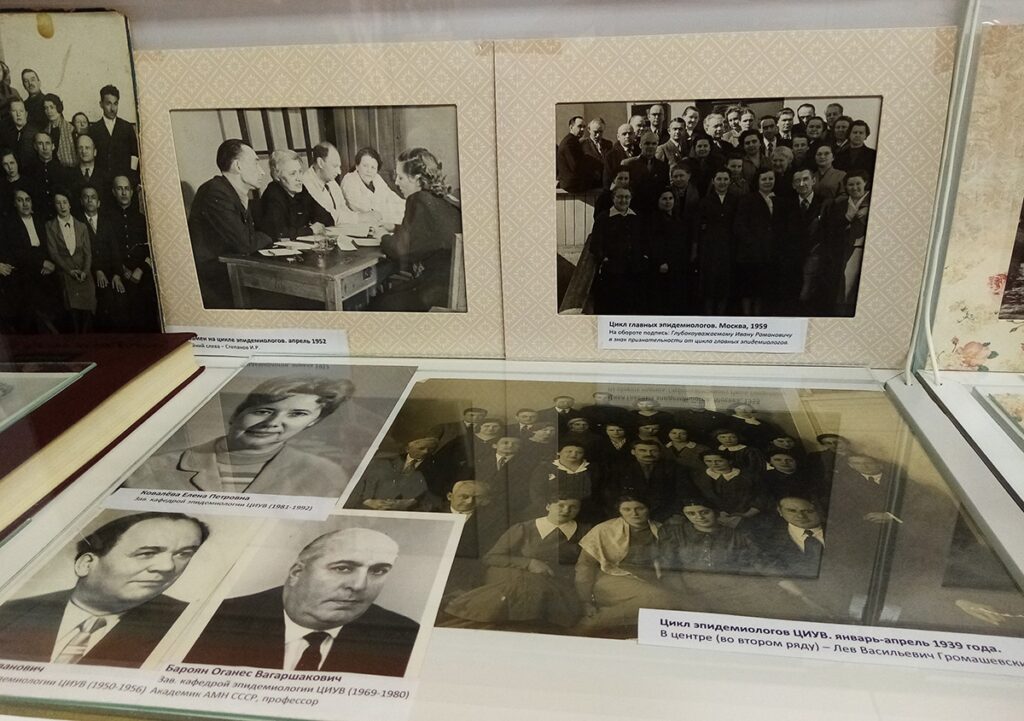 Кафедра эпидемиологии была организована в Центральном институте усовершенствования врачей в 1931 году. Ее основателем стал выдающийся ученый академик АМН профессор Лев Васильевич Громашевский, руководивший ею с 1931 по 1949 годы. Именно его наряду с Д.К. Заболотным считают основоположником современной теоретической эпидемиологии инфекционных (паразитарных) болезней. Вышедший в 1941 году учебник Л.В. Громашевского «Общая эпидемиология» неоднократно переиздавался (1941, 1942, 1949, 1965). В музее Академии хранится третье издание этой книги, а также большой труд Льва Васильевича «Частная эпидемиология» (1947). В постоянной экспозиции сегодня можно увидеть портреты заведующих кафедрой, руководивших ею со дня основания, фотографии курсантов разных лет выпусков, книги из личной библиотеки Л.В. Громашевского и редкие медицинские предметы из архива кафедры.