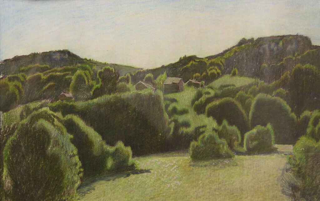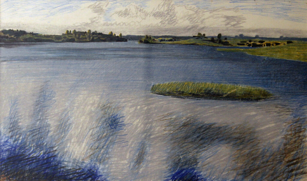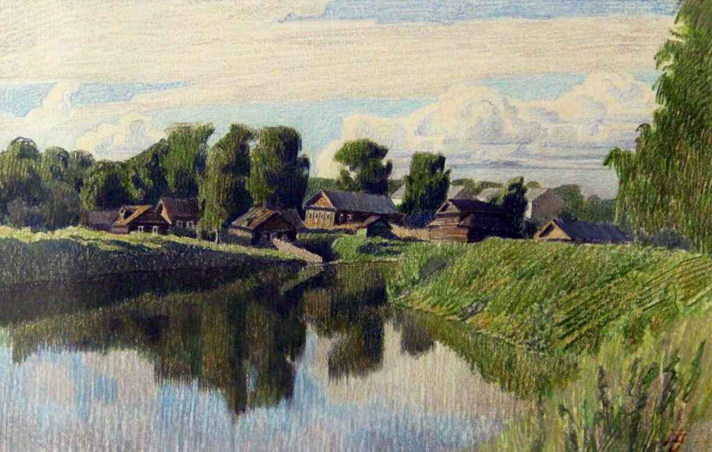 «Выбираю один рисующий цвет и прорабатываю им всю тональную структуру рисунка. Так на листе появляется композиция и одновременно легкий тон. Выбор этого рисующего цвета зависит от задуманного или наблюденного цветового решения, от общего тона будущего рисунка. Чаще всего это карандаши серебристых тонов, умеренной тепло-холодности, способные принять на себя последующие цвета и на заглушить их. Затем по этой основе я работаю цветом. В процессе рисования происходит как бы естественный отбор и в руках оказывается не больше 5-7 карандашей, которыми можно вести будущую работу. Накладываясь друг на друга и звуча самостоятельно, эти 5-7 цветов могут дать необыкновенно богатое цветовое решение».