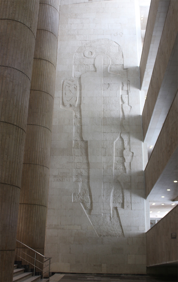 Традиционно музейная экскурсия начинается в большом холле Учебно-лабораторного корпуса, где посетители осматривают монументальный рельеф, выполненный выдающимся скульптором Андреем Николаевичем Красулиным в 1978 году, и знакомятся с каталогами выставок, на которых экспонировался макет фонтана «Древо жизни», также выполненный А.Н. Красулиным для Центрального института усовершенствования врачей и расположенный на территории Учебно-лабораторного корпуса.