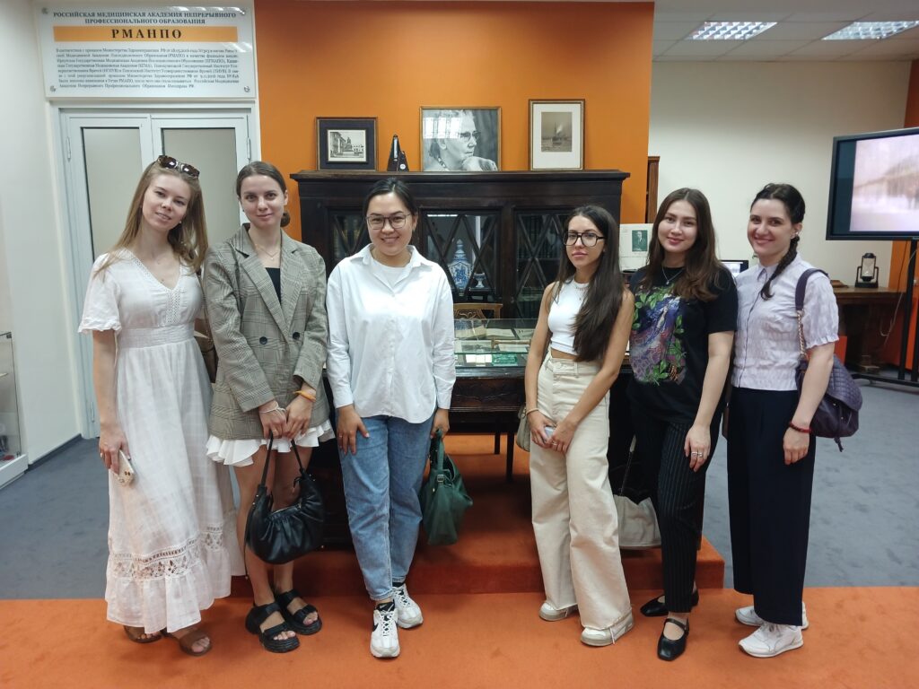 В музее Академии состоялась организованная экскурсия для ординаторов 2-го года обучения кафедры дерматовенерологии и косметологии РМАНПО. Гости музея познакомились с историей образовательной организации, узнали об этапах развития ЦИУВ-РМАПО-РМАНПО, увидели наиболее интересные экспонаты из коллекции музея, связанные с жизнью выдающихся деятелей отечественной медицины. Заведующая музеем Наталья Александровна Хмелёва также обратила внимание посетителей на обновленные витрины с расширенной экспозицией, посвященной отдельным кафедрам ЦИУВ. Сегодня музей Академии представляет собой уникальное пространство, в котором мемориальные предметы, архивные документы и редкие фотографии позволяют слушателя глубже погрузиться в атмосферу времени, почувствовать свою сопричастность деятельности выдающихся ученых ЦИУВ, прикоснуться к истокам образовательной организации. В заключение встречи был показан небольшой фильм об истории Вдовьего дома на Баррикадной улице, где в настоящее время располагается центральный административный корпус РМАНПО.