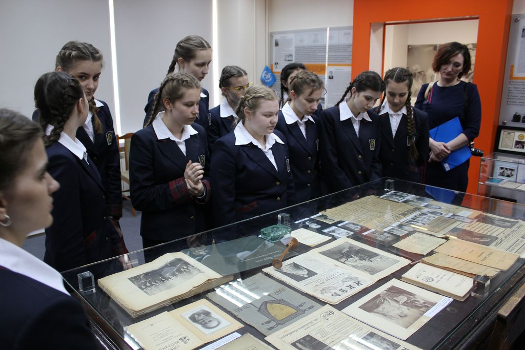 Заведующая музеем Хмелева Наталья Александровна провела экскурсию для воспитанниц Пансиона, рассказала историю Академии с момента ее основания до сегодняшних дней.